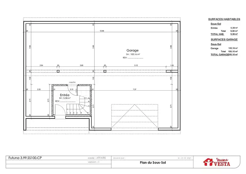 Le modèle FUTUNA se distingue par son sous-sol généreux, pouvant atteindre jusqu'à 100 m², offrant ainsi la possibilité de doubler presque la surface utile de votre habitation. Que ce soit pour un très grand garage, un atelier, ou tout simplement un espace de stockage supplémentaire, cette maison s'adapte à toutes vos exigences.