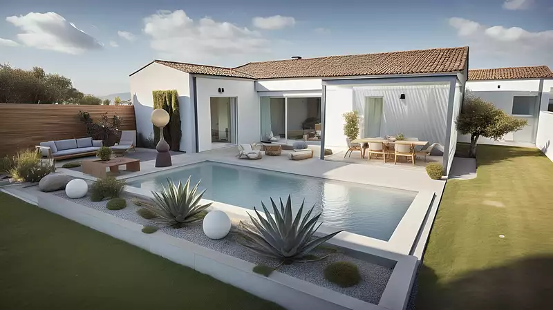 La maison qui sera construite sur ce terrain présente une surface habitable de 79 m², optimisée pour un confort maximal avec ses 4 pièces dont 2 chambres spacieuses. Vous disposerez également d'un garage attenant pour un accès facilité et sécurisé. Ce modèle de maison, au style traditionnel, est conçu pour allier fonctionnalité et esthétisme, tout en garantissant une gestion efficace du chauffage grâce à une pompe à chaleur et un système d'eau chaude individuel.