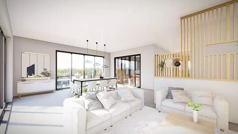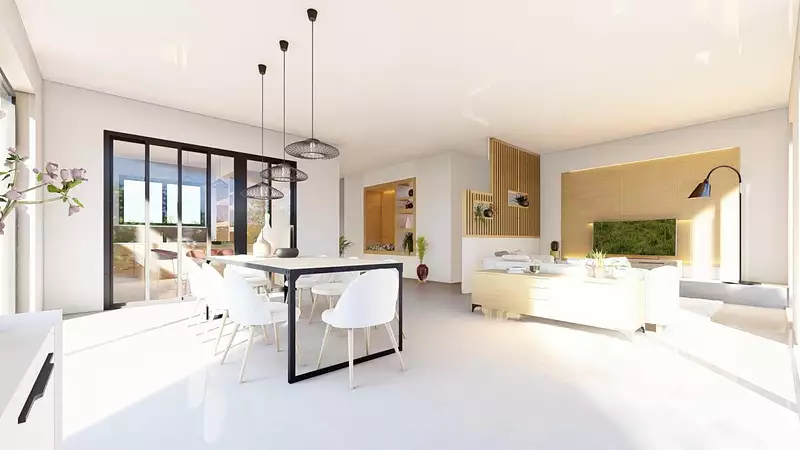 Le projet, prévu avec 1 terrasse sud-ouest et 1 terrasse plein sud, offrira des matériaux nobles : isolant biosourcé en laine de bois, menuiseries ALU à galandage, carrelage grand format 80 x 80 rectifié, pompe à chaleur VIESSMANN avec plancher chauffant rafraichissant…pour une rénovation globale clés en mains et un DPE A ou B.