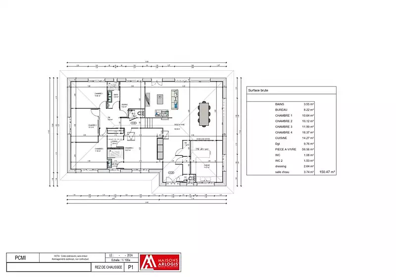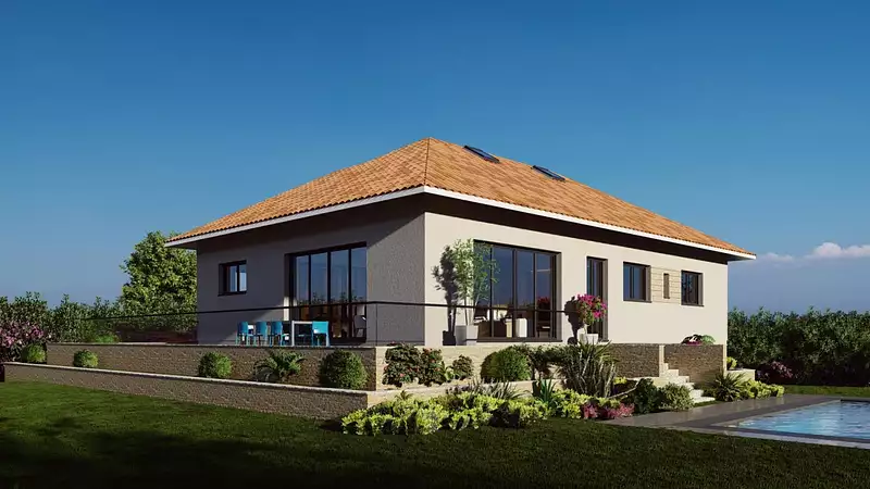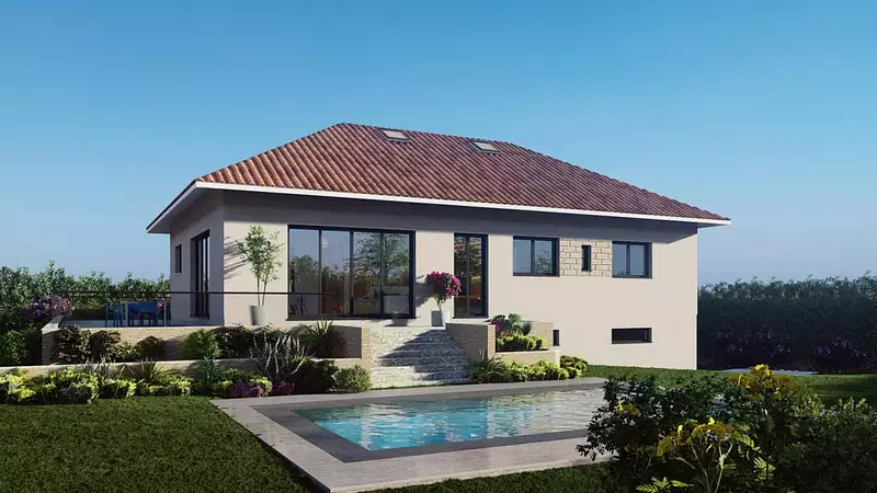 Projet en accord avec notre partenaire immobilier. Visuel d'illustration. Le modèle est totalement adaptable à vos envies et besoins et personnalisable grâce à de nombreuses options de finition. Nous consulter pour plus d’informations. Le prix affiché comprend le coût du terrain et de la construction hors frais de notaire et taxes. Les annonces de terrains constructibles sont sélectionnées auprès de nos partenaires fonciers selon disponibilités et autorisation de publicité en vue de construire une maison neuve avec un Contrat de Construction de Maison Individuelle dans le cadre de la loi du 19/12/1990. Ces derniers sont soit des professionnels dûment habilités à la transaction immobilière, soit des particuliers. Les terrains sélectionnés sont disponibles à la date de la première parution de l’annonce. En aucun cas Maisons ARLOGIS ou ses collaborateurs ne sont propriétaires des terrains, ne jouent un rôle d’intermédiation ou de négociation sur la transaction et ne participent à la vente. Prix indiqués par nos partenaires fonciers.