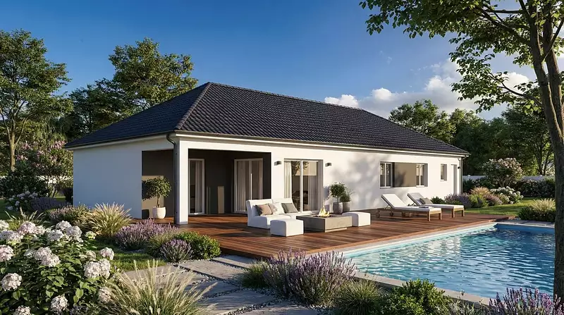 Sur ce terrain, nous vous proposons cette maison neuve : l'Intimity I de notre gamme Evasihome.