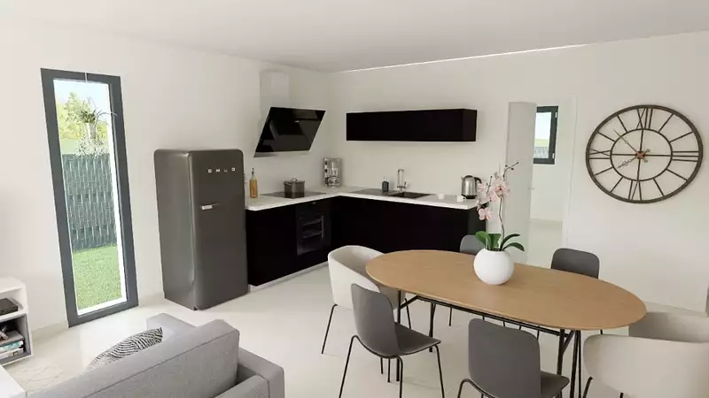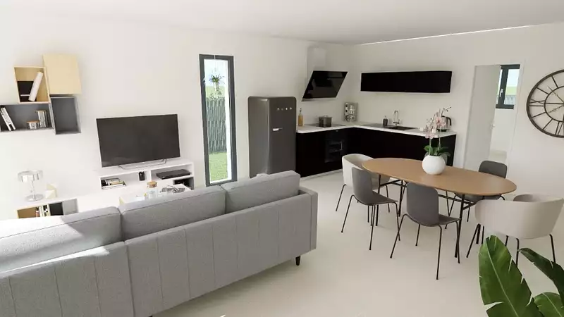 Terrain proposé par un partenaire foncier selon disponibilités et autorisation de publicité au prix de 121 000 €. Hors droit d'enregistrement et frais de notaire. Maison proposée, avec un contrat de construction de maison individuelle, dans le cadre de la loi du 19/12/1990, au prix de 125 000 € (Hors branchements et raccordements, papiers peints, peintures, revêtement de sol dans les chambres, qui sont chiffrés dans les travaux qui restent à charge du client. Tarif modifiable sans préavis). Étiquette énergie : A. Différents modèles disponibles pour ce terrain. Assurances et garanties du constructeur comprises (RC professionnelle, décennale, dommage ouvrage).