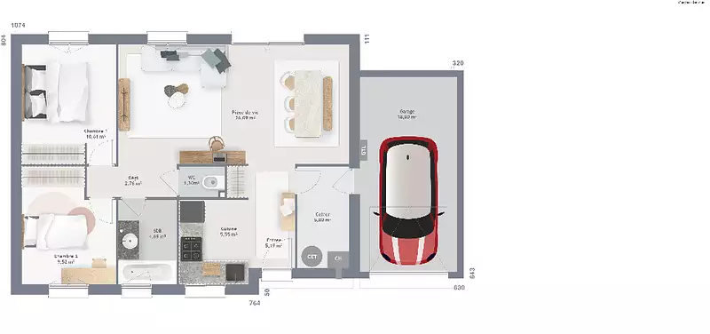 Proposée par MAISONS FRANCE CONFORT – 4 pièces - 2 chambres - terrain 453 m²