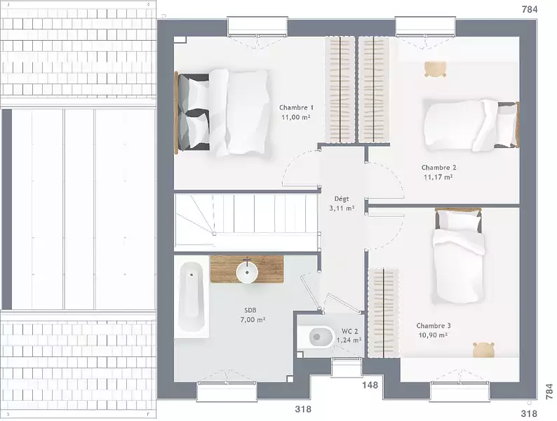 - Chambres : 3