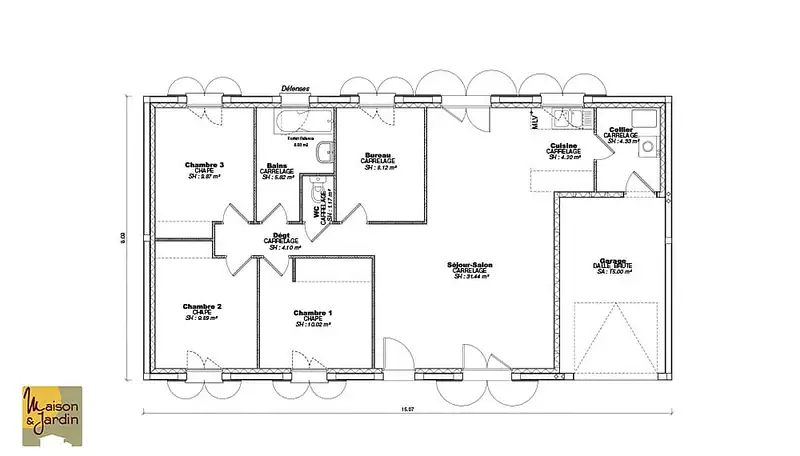 Proposée par MAISON ET JARDIN – 5 pièces - 4 chambres - terrain 1 148 m²