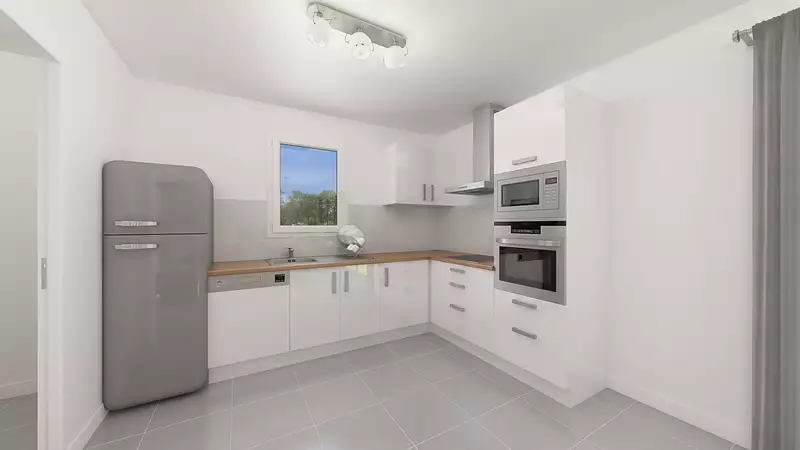 Cette maison de plain-pied en L, fonctionnelle et spacieuse vous propose un bel espace de vie lumineux et traversant. Sa cuisine est ouverte sur le séjour et a un accès direct au cellier. Son espace nuit est composé de trois belles chambres dont une suite parentale avec dressing et salle de bain privative, une deuxième salle de bains équipé ainsi que des wc séparés. Pour vous assurer un confort de vie et conformèment à la RE2025, nous avons choisi un mode de chauffage par PAC + plancher chauffant, volets roulants électriques, Prix hors fourniture et pose : des appareils sanitaires (sauf système de chauffage et d'eau chaude sanitaire), du carrelage et de la faïence, des revêtements de sol dans les chambres. Hors décoration et aménagement intérieur et peinture. Hors raccordements, frais de notaire et dommage ouvrage.