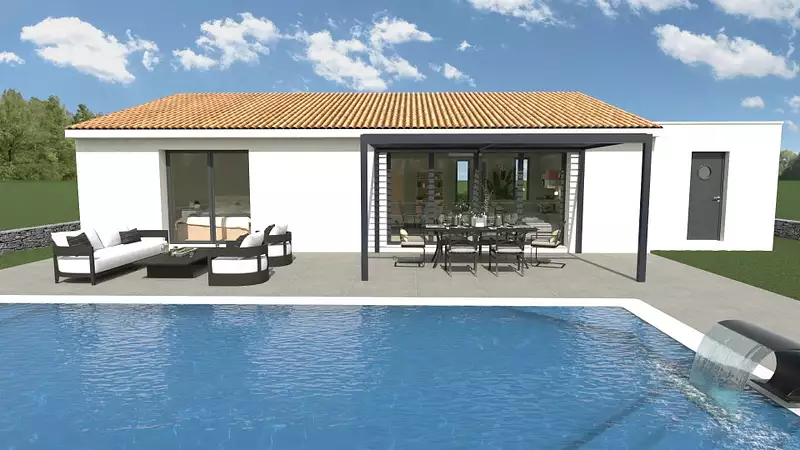 Le prix de vente de cette maison de 4 pièces est de 297 000 € (compris étude de sol, études thermiques, plans de permis, raccordements, carrelage, faïence, sanitaires, volets roulants motorisés, climatisation, normes RE 2020). Plans sur mesure.