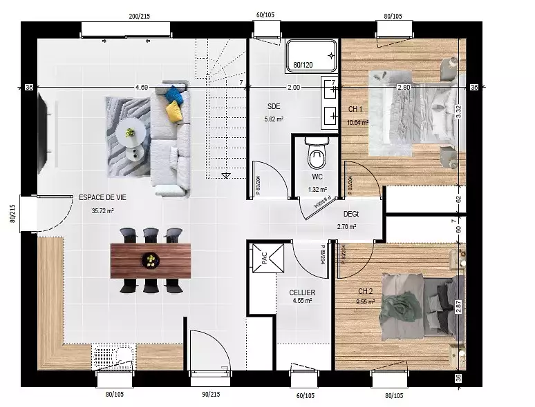 Proposée par MAISONS BERNARD JAMBERT – 4 pièces - 2 chambres - terrain 1 250 m²