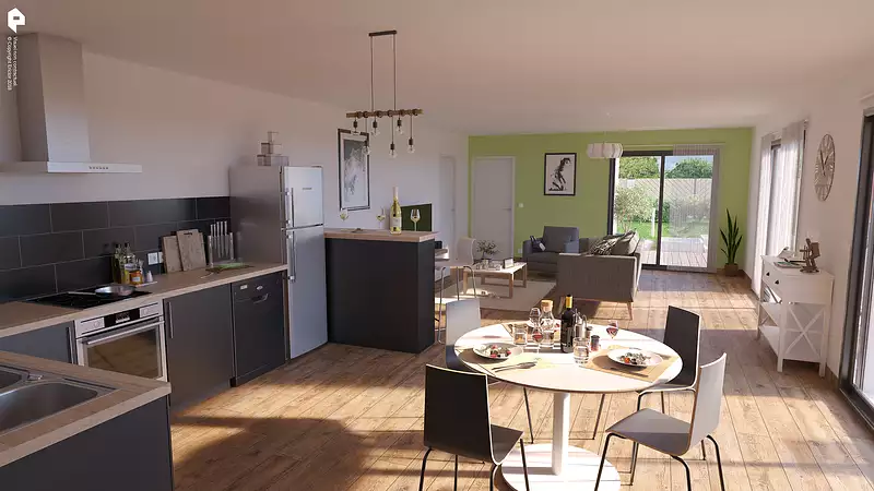 Vous aimerez les lignes très modernes et épurées de cette villa de plain-pied ainsi que la fluidité de sa distribution ; tous les espaces sont justement pensés. Le cœur de la maison est la pièce principale autour de laquelle s'articulent d'un côté, la suite parentale et de l'autre, deux chambres et leur salle de bain. Dans la même logique d'optimisation de l'espace, des rangements sont prévus dans chaque pièce. Grâce à de belles sufaces vitrées, la lumière sera l'un des atouts majeurs de cette réalisation. Du carrelage de standing, un chauffage haute performance et écologique. Pour vous assurer un confort de vie et conformément à la RE2025, nous avons choisi un mode de chauffage par PAC + plancher chauffant, volets roulants électriques. Prix hors peinture, décoration, revêtements de sol dans les chambres, cuisine équipée, frais de notaire, raccordements, dommage ouvrage. (Piscine non contractuelle, non comprise dans le prix).