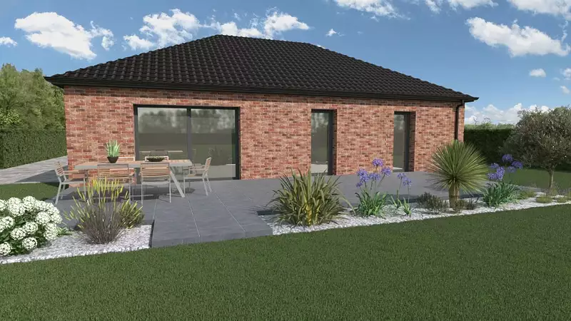 Terrain proposé par un partenaire foncier selon disponibilités et autorisation de publicité au prix de 53 600 €. Hors droit d'enregistrement et frais de notaire. Terrain + Maison proposés au prix de 233 000 € (Hors branchements et raccordements, papiers peints, peintures, revêtement de sol dans les chambres. Tarif modifiable sans préavis). Etiquette énergie : A. Différents modèles disponibles pour ce terrain. Assurances et garanties du constructeur (RC professionnelle, décennale, dommage ouvrage, garantie de remboursement de l'acompte, livraison à prix et délai convenu) : HEXAOM Services est enregistré auprès de l'ORIAS en tant que Courtier en financement, Niveau 1, sous le numéro 14001345.