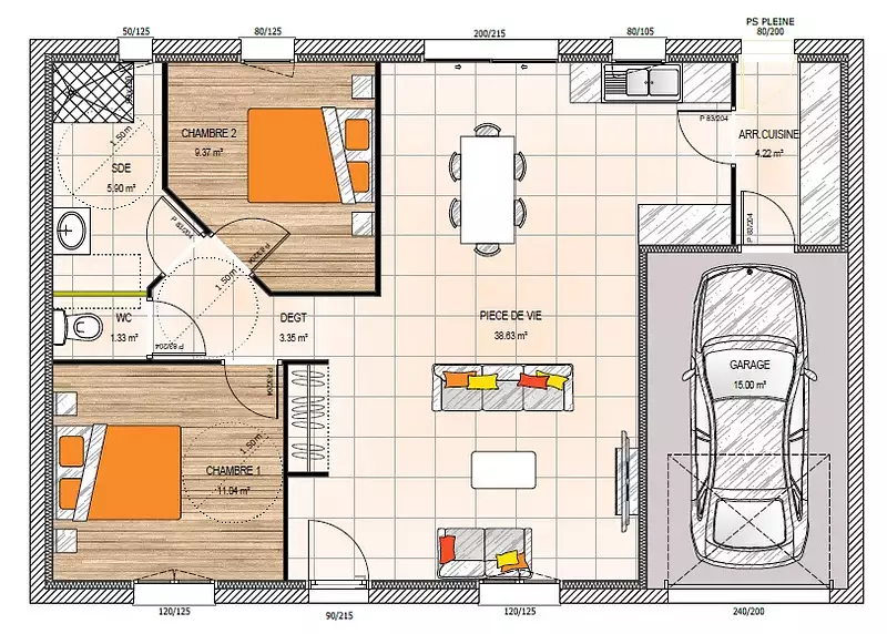 Proposée par MAISONS BERNARD JAMBERT – 4 pièces - 2 chambres - terrain 462 m²