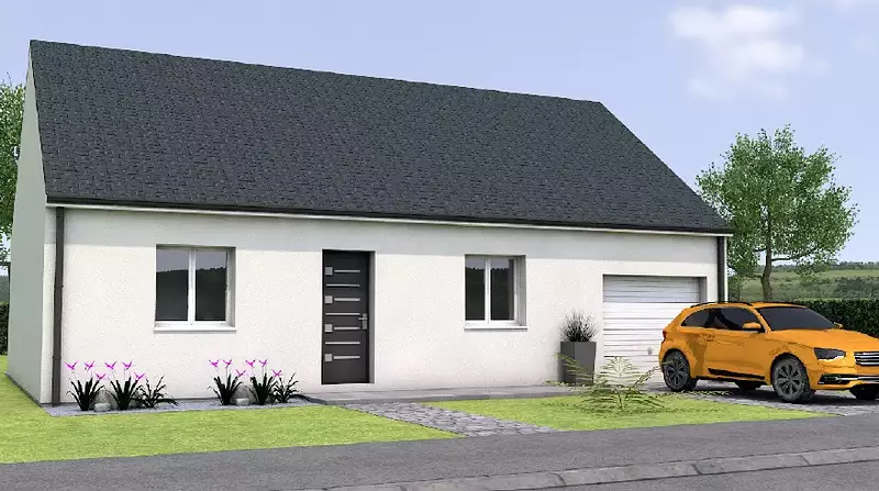Proche d'Angers - À Feneu (49460), maison neuve en vente de 4 pièces, 70 m² sur 462 m² de terrain. Elle compte deux chambres, une cuisine et une salle de bains.