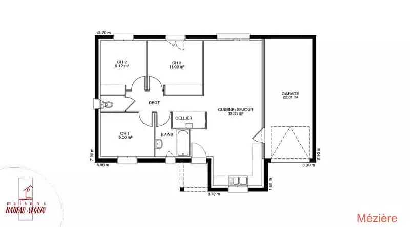 Présentant 3 chambres et 4 pièces, la Mézière Sud est idéale pour les familles en quête de confort et de modernité. Son plan en L, disponible en version 2 pans ou 4 pans, offre une disposition harmonieuse et fonctionnelle. Vous pourrez également choisir entre un garage accolé ou un sous-sol, selon vos besoins. Un porche accueillant complète cette maison, ajoutant une touche de charme supplémentaire.
