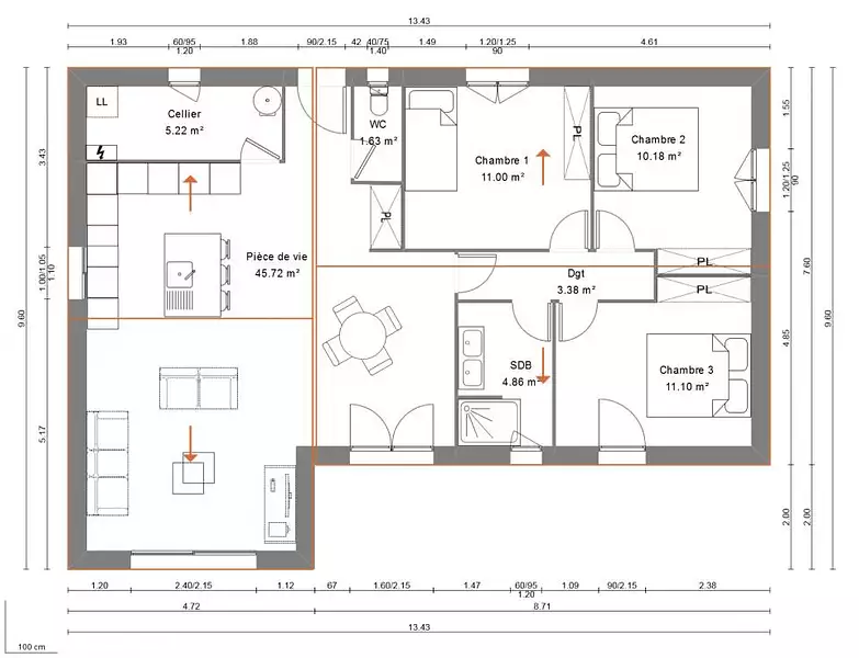 Maison de 3 pièces