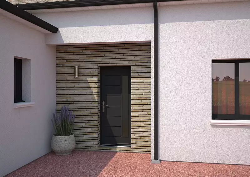 Un plan en L qui change tout !. Cette maison séduit au premier regard par son architecture en L, qui structure l’espace avec fluidité et caractère. L’espace de vie s’ouvre naturellement sur l’extérieur, baigné de lumière et prêt à accueillir vos moments de partage. Le coin nuit, bien séparé, propose 4 chambres confortables et deux salles d’eau pour une vie de famille tout en douceur. Le cellier attenant à la cuisine et le garage intégré ajoutent une touche de praticité au quotidien. Un modèle pensé pour s’adapter à toutes les envies, avec un vrai potentiel de personnalisation. . Pour un confort optimal et conforme à la RE2025, cette maison dispose d’une PAC avec plancher chauffant et volets roulants électriques. À noter : Le prix indiqué exclut les revêtements de sol des chambres, la cuisine aménagée, la peinture, la décoration, les raccordements, les frais de notaire et l’assurance dommages-ouvrage. .