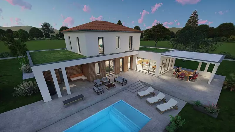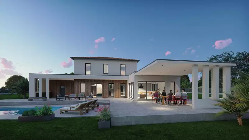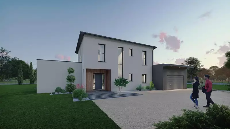 Terrain en accord avec notre partenaire foncier, sous réserve de disponibilité. Prix et visuels non contractuels. Projet conforme à la RE2020 Visuel d'illustration. Le modèle est totalement adaptable à vos envies et besoins et personnalisable grâce à de nombreuses options de finition. Nous consulter pour plus d’informations. Le prix affiché comprend le coût du terrain et de la construction hors frais de notaire et taxes. Les annonces de terrains constructibles sont sélectionnées auprès de nos partenaires fonciers selon disponibilités et autorisation de publicité en vue de construire une maison neuve avec un Contrat de Construction de Maison Individuelle dans le cadre de la loi du 19/12/1990. Ces derniers sont soit des professionnels dûment habilités à la transaction immobilière, soit des particuliers. Les terrains sélectionnés sont disponibles à la date de la première parution de l’annonce. En aucun cas Maisons ARLOGIS ou ses collaborateurs ne sont propriétaires des terrains, ne jouent un rôle d’intermédiation ou de négociation sur la transaction et ne participent à la vente. Prix indiqués par nos partenaires fonciers.