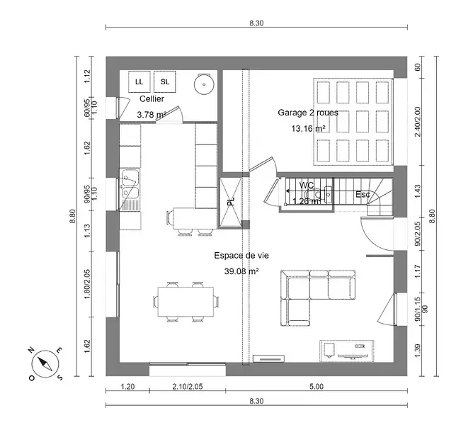 Maison de 3 pièces