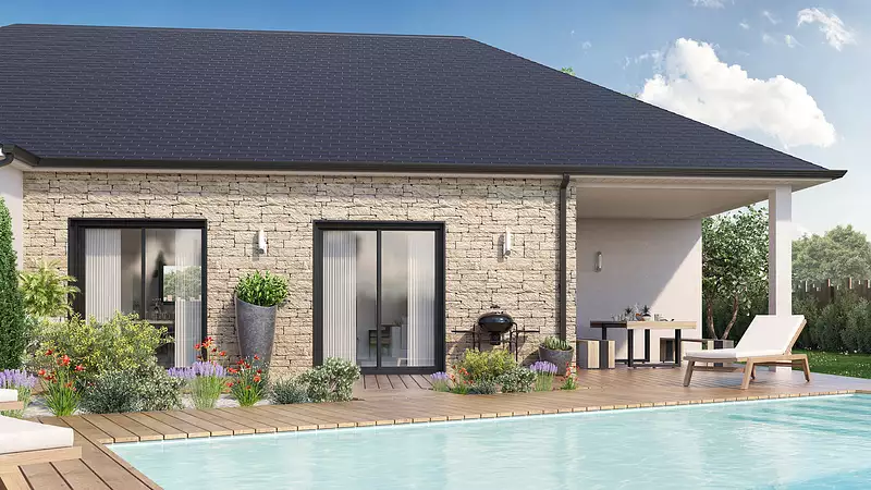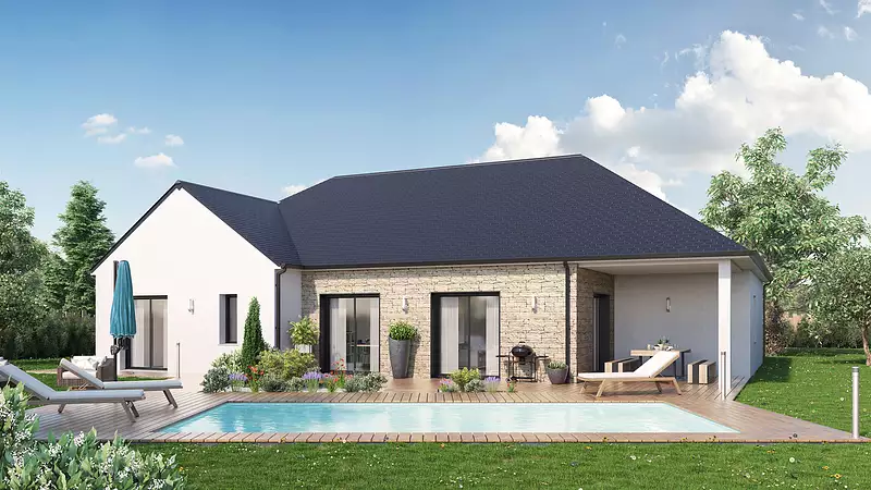 Un espace pensé pour vous, une maison à imaginer ! Et si votre maison s’adaptait à votre mode de vie ? Un salon-séjour spacieux et lumineux, une cuisine ouverte idéale pour partager des moments en famille, et un cellier astucieux pour plus de praticité. Avec 3 chambres confortables, une suite parentale avec dressing et salle d’eau, ainsi que deux salles de bain, chacun trouve son espace. Besoin d’un bureau, d’un espace détente ou d’un aménagement sur-mesure ? Tout est possible, tout est modulable !. Une maison qui vous ressemble, à façonner selon vos envies… Prêts à la personnaliser ?. Pour un confort optimal et conforme à la RE2025, cette maison dispose d’une PAC avec plancher chauffant et volets roulants électriques. À noter : Le prix indiqué exclut les revêtements de sol des chambres, la cuisine aménagée, la peinture, la décoration, les raccordements, les frais de notaire et l’assurance dommages-ouvrage. (Piscine non contractuelle, non comprise dans le prix).