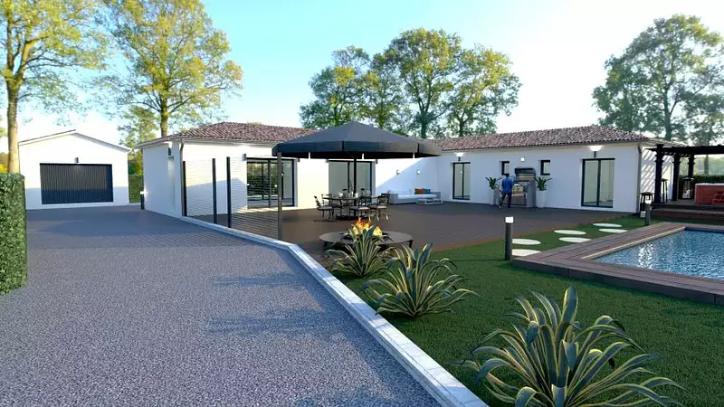 Demeures d'occitanie vous propose cette villa moderne et contemporaine de 120 M2 habitables, avec 4 chambres spacieuses dont une suite parentale avec salle d'eau et dressing. Elle se compose également d'un garage avec porte sectionnelle motorisé, d'un cellier, d'une cuisine ouverte sur la pièce de vie lumineuse donnant sur votre futur jardin. Chauffage avec pompe à chaleur gainable et domotique, pour un confort absolu. Cette villa est totalement personnalisable selon vos attentes et votre demande, un projet à étage peut par ailleurs être étudié sur ce terrain pour augmenter votre espace extérieur.(assurances et garanties incluses, hors frais annexes et frais de notaire du terrain) contacter Sonia vieira pour des informations complémentaires et prise de rdv oser devenir les propriétaires de demain avec DEMEURES D'OCCITANIE PORTET SUR GARONNE Nous avons sélectionné ce terrain en partenariat avec nos aménageurs fonciers, dans le cadre d’un projet avec Demeures d'Occitanie.