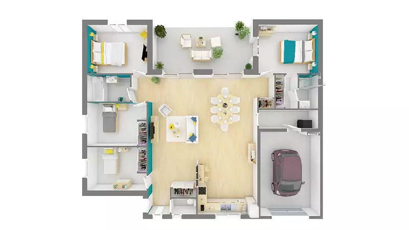 Conforme à la norme RE2020, l'Isneauve U est une maison basse consommation, pensée pour minimiser son impact environnemental tout en maximisant le confort de ses habitants. Cette maison est une véritable invitation à vivre dans un espace qui respecte à la fois l'environnement et les besoins de chaque famille.