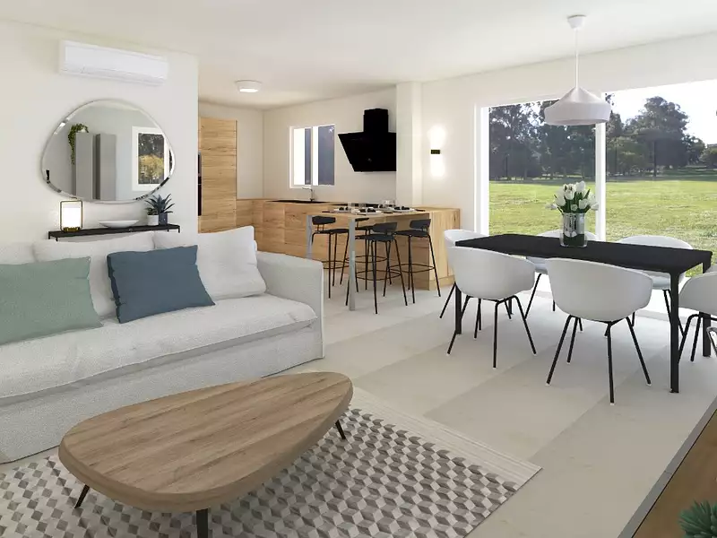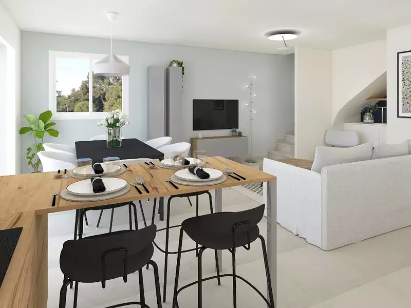 PCA Maisons, constructeur reconnu dans le Var, vous accompagne dans la réalisation de votre projet sur mesure. Nous vous proposons ici un modèle de maison a étages complet de 100 m², comprenant 2 chambres, un espace de vie lumineux et fonctionnel, pensé pour allier confort et esthétisme.