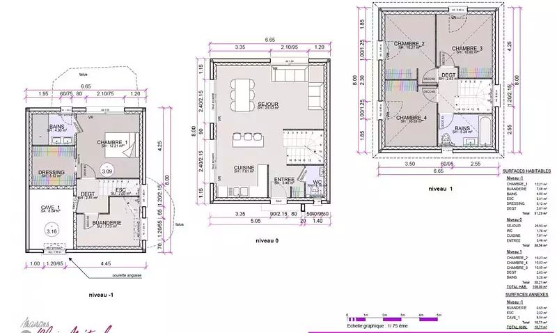 On projette une villa de 120 m² habitable sur 3 niveaux sans garage mais possibilité de poser un Carport.