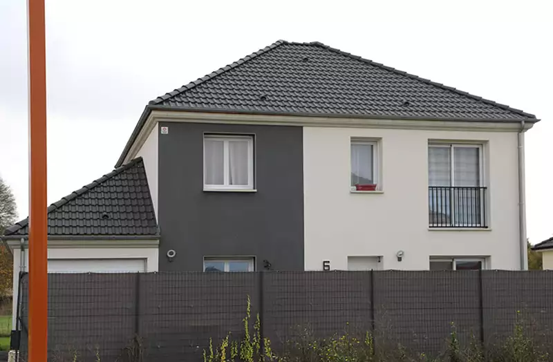 Les menuiseries en PVC sont proposées en 4 coloris au choix. La toiture est réalisée en tuiles plates rainurées. Côté façades cette maison dispose de débords de toit en corniches ravalées, de gouttières et descentes de pluie en zinc. Plusieurs couleurs d'enduit extérieur sont proposés. 2 robinets de puisage, 2 prises électriques extérieures et au minimum 4 points lumineux extérieurs sont également prévus.