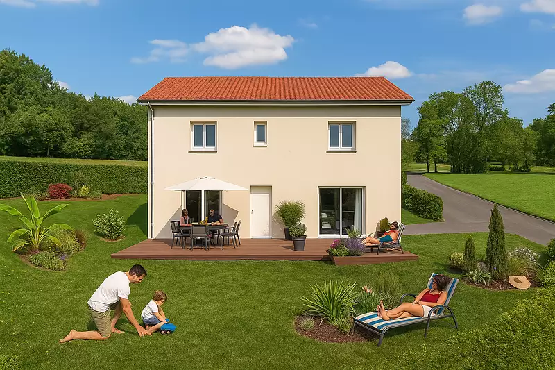 Prix maison inclus : 200 000 € VRD non inclus : € Hors aménagements extérieurs (extensions, terrasse, piscine etc), papiers peints, peintures, moquettes dans les chambres (tarif en vigueur au 20 mai 2025, modifiable sans préavis, prix variables suivant les prestations souhaitées). Hors frais d’hypothèque.