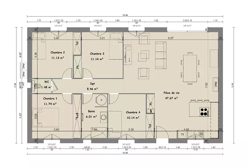 - Chambres : 4