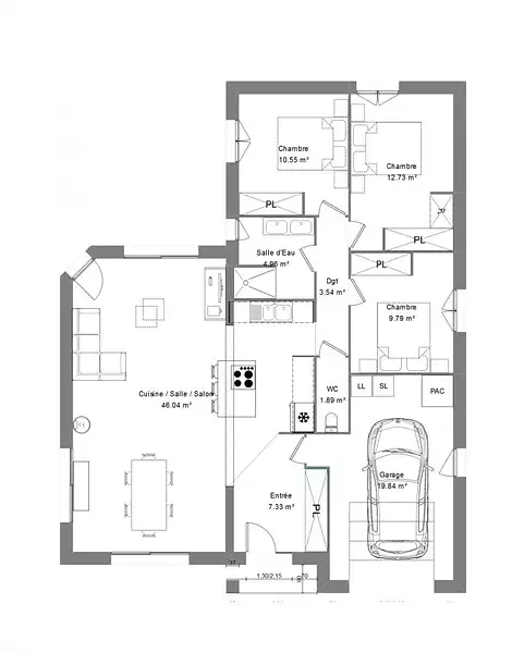 - Chambres : 3