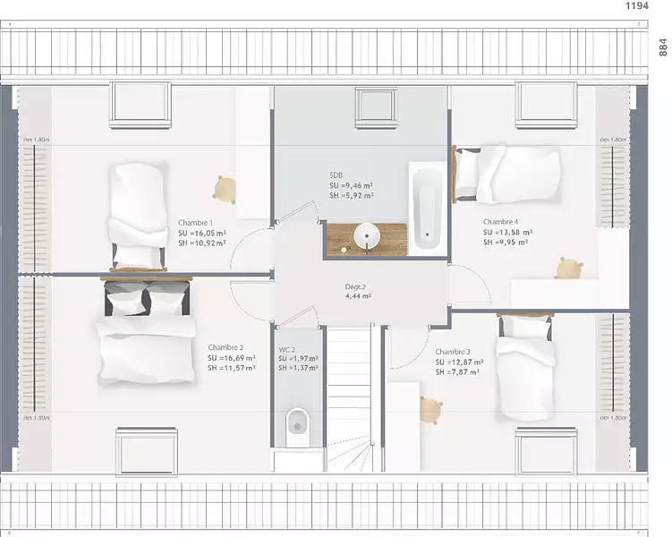 Proposée par MAISONS FRANCE CONFORT – 6 pièces - 4 chambres - terrain 423 m²