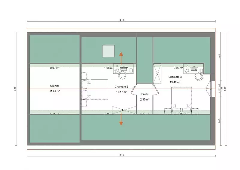 - Chambres : 3