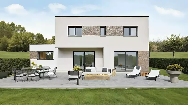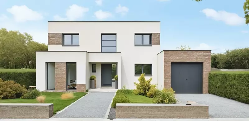 Maisons Arlogis constructeur de maisons sur-mesure vous propose de réaliser cette maison cubique, sur un terrain d'environ 1000m² situé à Friville-Escarbotin, proche de toutes commodités.