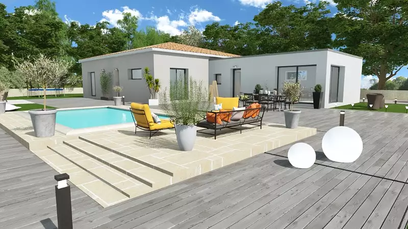 Découvrez cette maison plain-pied en L de 115m² au lignes modernes et épurées, composé de 3 ou 4 chambres dont 1 suite parentale, vous profiterez d'un belle espace de vie de 50m² lumineux et ouvert sur l'extérieur. Un cellier vient compléter le tout