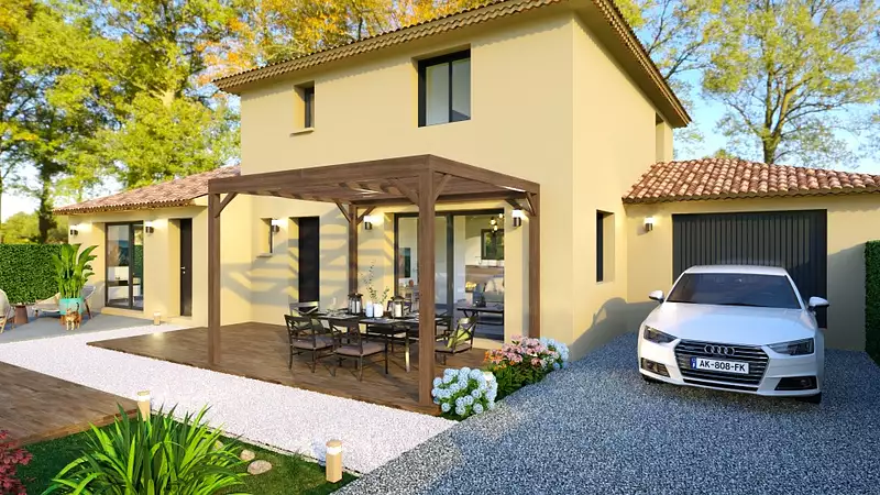 Votre constructeur Maisons France Confort Rocbaron, vous propose cette villa personnalisée 147m2 habitable sur un terrain de 2100m² plat à Garéoult. A proximité de toutes les commodités, cette maison dispose de deux logements. L'un comprend un bel espace de vie ouvert de plus de 40m² avec cellier et propose 3 chambres à l'étage et une salle d'eau avec wc. Un T2 attenant est prévu + garage.