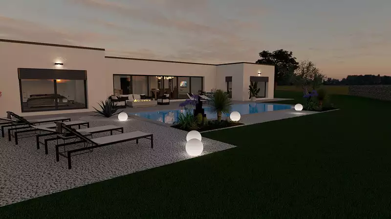 Terrain proposé par un partenaire foncier selon disponibilités et autorisation de publicité au prix de 199 000 €. Hors droit d'enregistrement et frais de notaire. Terrain + Maison proposés au prix de 560 800 € (Hors branchements et raccordements, papiers peints, peintures, revêtement de sol dans les chambres. Tarif modifiable sans préavis). Etiquette énergie : A. Différents modèles disponibles pour ce terrain. . HEXAOM Services est enregistré auprès de l'ORIAS en tant que Courtier en financement, Niveau 1, sous le numéro 14001345.