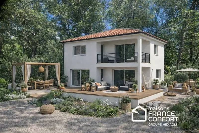 Terrain proposé par un partenaire foncier selon disponibilités et autorisation de publicité au prix de 168 000 €. Hors droit d'enregistrement et frais de notaire. Terrain + Maison proposés au prix de 235 000 € (Hors branchements et raccordements, papiers peints, peintures, revêtement de sol dans les chambres. Tarif modifiable sans préavis). Etiquette énergie : A. Différents modèles disponibles pour ce terrain. Assurances et garanties du constructeur (RC professionnelle, décennale, dommage ouvrage, garantie de remboursement de l'acompte, livraison à prix et délai convenu) : https://www.maisons-france-confort.fr/mentions-legales/. HEXAOM Services est enregistré auprès de l'ORIAS en tant que Courtier en financement, Niveau 1, sous le numéro 14001345.