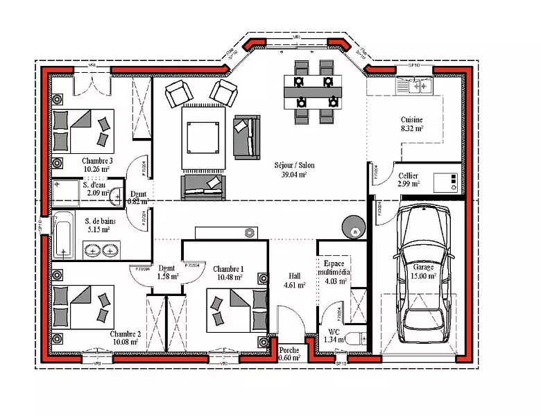 Proposée par BATISOFT – 5 pièces - 3 chambres - terrain 390 m²