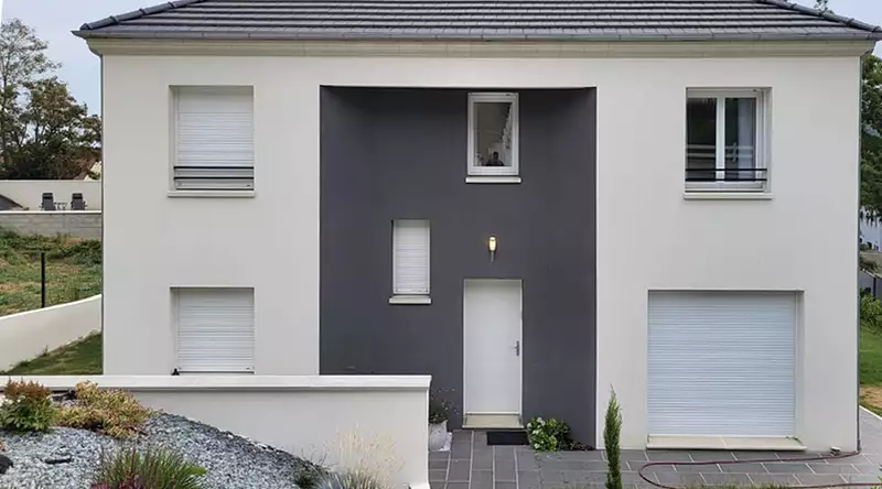 Les menuiseries sont en PVC de couleur blanche. La toiture est réalisée en tuiles béton double romane. Plusieurs couleurs d'enduit extérieur sont proposées.