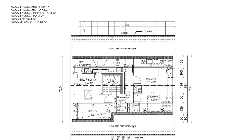 171.60 m2 de surface plancher + garage en sous sol total.