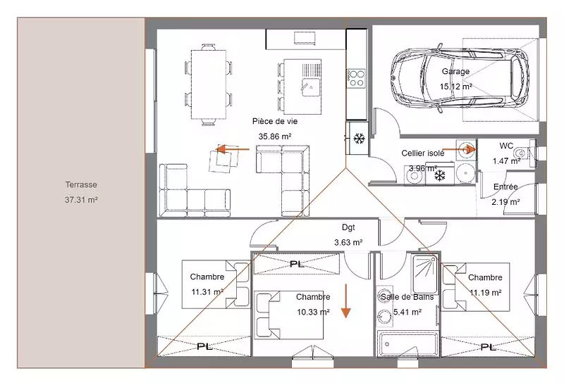 Proposée par MAISONS FRANCE CONFORT – 4 pièces - 3 chambres - terrain 360 m²