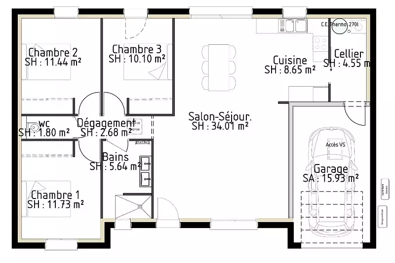 Proposée par MAISONS PARTOUT – 5 pièces - 3 chambres - terrain 745 m²