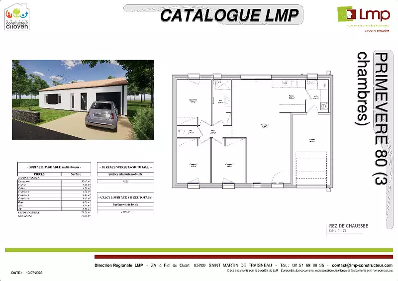 Proposée par LMP CONSTRUCTEUR – 4 pièces - 3 chambres - terrain 222 m²