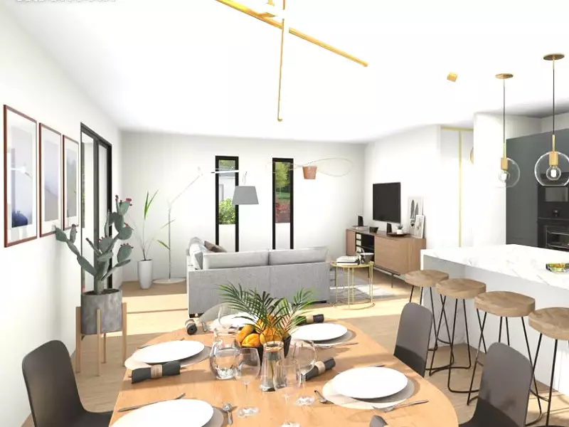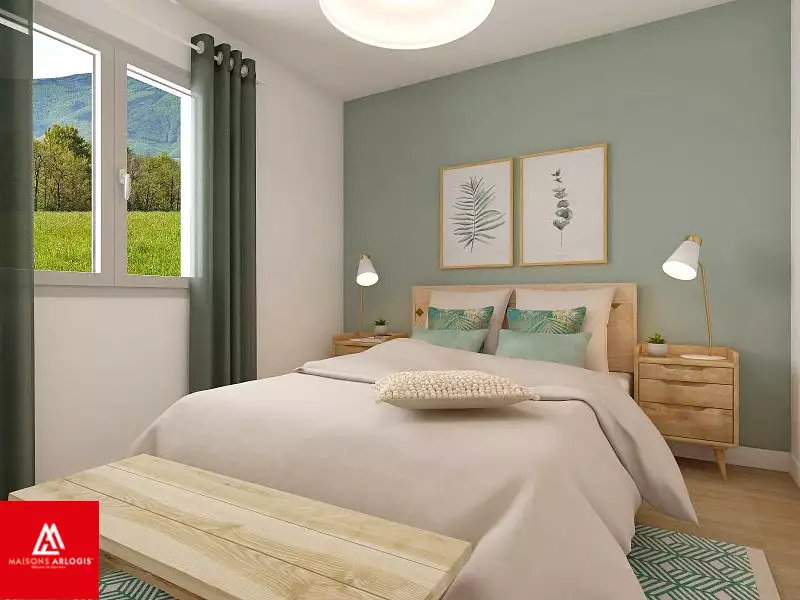 -------------------------------------------------------------------------------------------- Visuel d'illustration. Le modèle est totalement adaptable à vos envies et besoins et personnalisable grâce à de nombreuses options de finition. Nous consulter pour plus d’informations. Le prix affiché comprend le coût du terrain et de la construction hors frais de notaire et taxes. Les annonces de terrains constructibles sont sélectionnées auprès de nos partenaires fonciers selon disponibilités et autorisation de publicité en vue de construire une maison neuve avec un Contrat de Construction de Maison Individuelle dans le cadre de la loi du 19/12/1990. Ces derniers sont soit des professionnels dûment habilités à la transaction immobilière, soit des particuliers. Les terrains sélectionnés sont disponibles à la date de la première parution de l’annonce. En aucun cas Maisons ARLOGIS ou ses collaborateurs ne sont propriétaires des terrains, ne jouent un rôle d’intermédiation ou de négociation sur la transaction et ne participent à la vente. Prix indiqués par nos partenaires fonciers.
