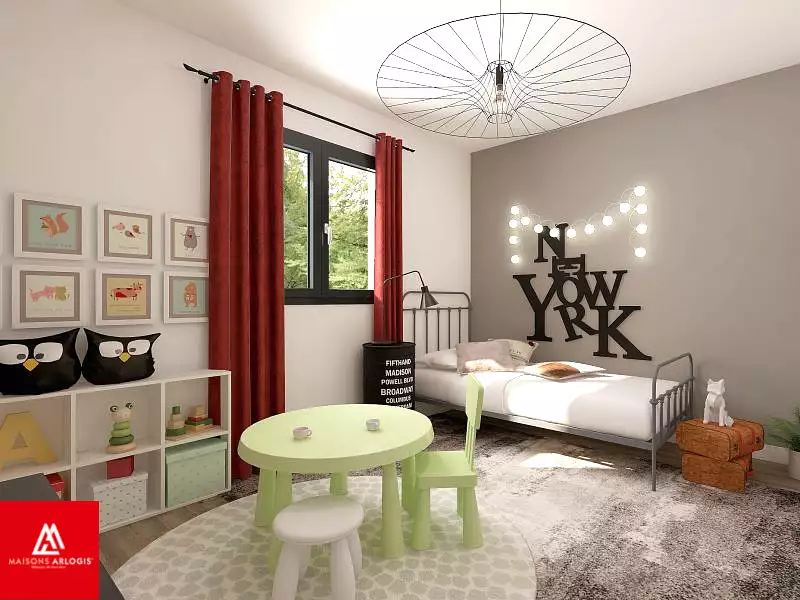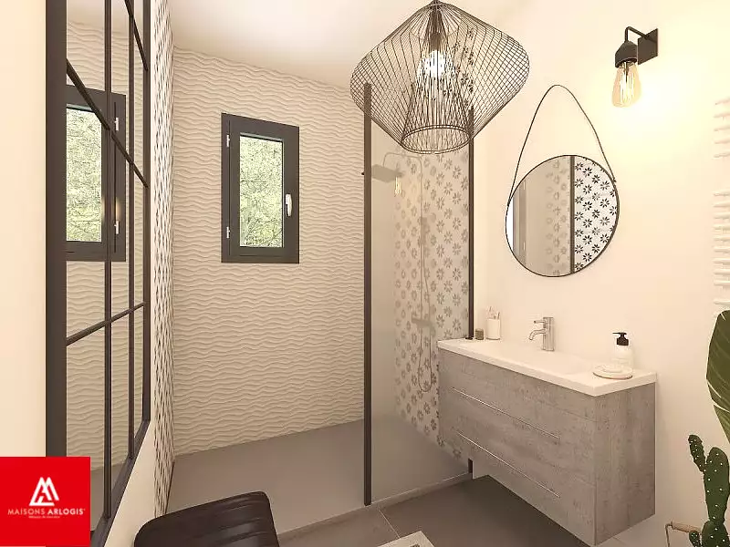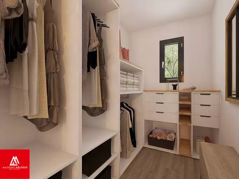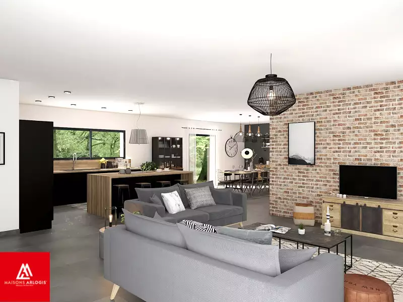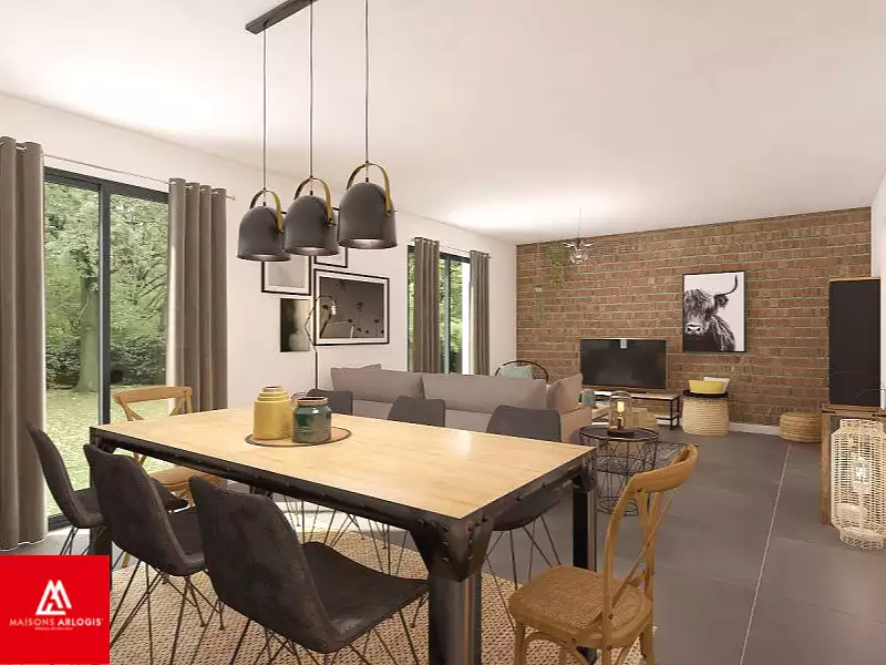 ****************************************************************** Visuel d'illustration. Le modèle est totalement adaptable à vos envies et besoins et personnalisable grâce à de nombreuses options de finition. Nous consulter pour plus d’informations. Le prix affiché comprend le coût du terrain et de la construction hors frais de notaire et taxes. Les annonces de terrains constructibles sont sélectionnées auprès de nos partenaires fonciers selon disponibilités et autorisation de publicité en vue de construire une maison neuve avec un Contrat de Construction de Maison Individuelle dans le cadre de la loi du 19/12/1990. Ces derniers sont soit des professionnels dûment habilités à la transaction immobilière, soit des particuliers. Les terrains sélectionnés sont disponibles à la date de la première parution de l’annonce. En aucun cas Maisons ARLOGIS ou ses collaborateurs ne sont propriétaires des terrains, ne jouent un rôle d’intermédiation ou de négociation sur la transaction et ne participent à la vente. Prix indiqués par nos partenaires fonciers.