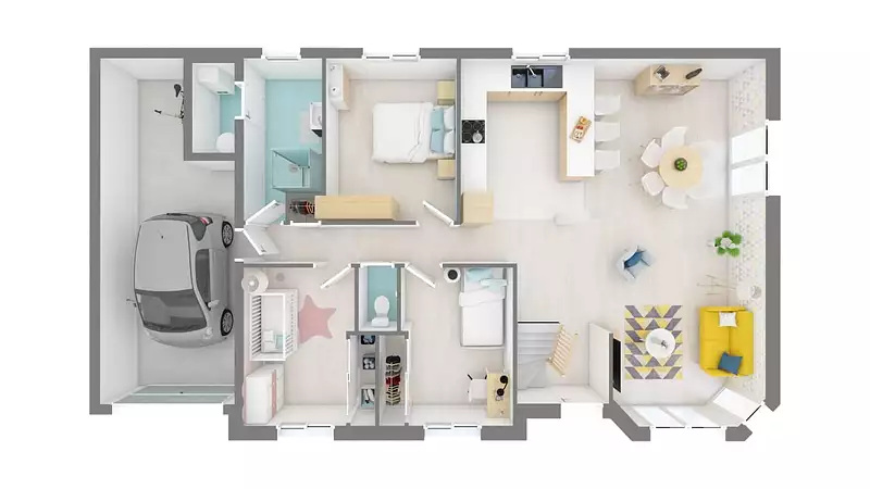 La Privilège se distingue par son architecture unique, avec un pan cassé en façade qui lui confère des lignes résolument design et modernes. Cette maison de 4 pièces, dont 3 chambres spacieuses, est idéale pour accueillir une famille désireuse de combiner esthétique et fonctionnalité. Le garage intégré offre non seulement un espace de stationnement sécurisé mais aussi un accès direct à l'intérieur pour plus de commodité.