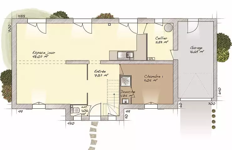 Terrain proposé par un partenaire foncier selon disponibilités et autorisation de publicité au prix de 82 000 €. Hors droit d'enregistrement et frais de notaire. Terrain + Maison proposés au prix de 261 560 € (Hors branchements et raccordements, papiers peints, peintures, revêtement de sol dans les chambres. Tarif modifiable sans préavis). Etiquette énergie : A. Différents modèles disponibles pour ce terrain. . HEXAOM Services est enregistré auprès de l'ORIAS en tant que Courtier en financement, Niveau 1, sous le numéro 14001345.