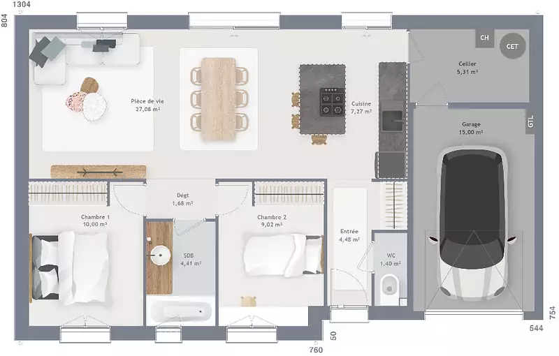 Proposée par MAISONS FRANCE CONFORT – 4 pièces - 2 chambres - terrain 300 m²
