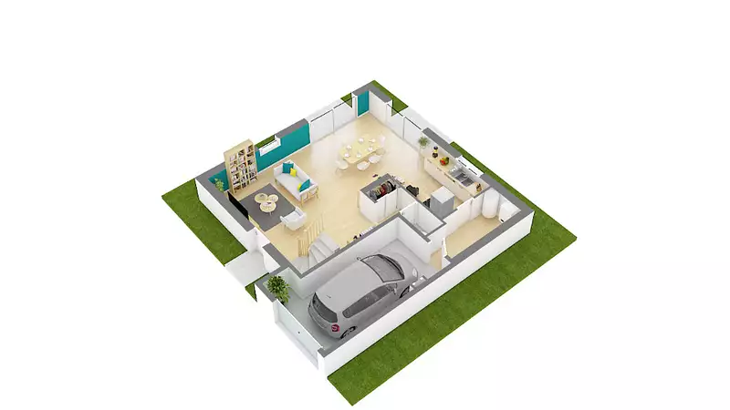 Maison livrée clef en main. Reste à charge client la cuisine, la peinture et revêtements de sols dans les chambres.