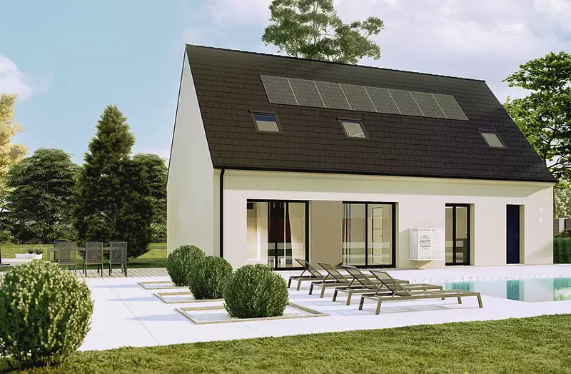 Les menuiseries sont en PVC de couleur blanche. La toiture est réalisée en tuiles béton double romane. Plusieurs couleurs d'enduit extérieur sont proposées.